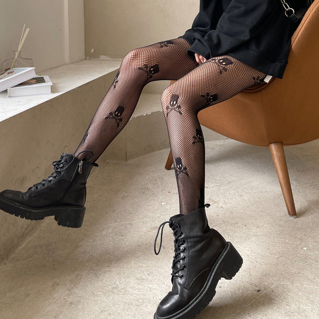 Q: What style options are available for this pantyhose? A: There is a wide range of styles to choose from, including Skull, Sling Bat, Hollow V1, Black Cat, White Cat, Butterfly, Hollow Skull, Heart, Double Heart, AB Black, AB White, AB, Pentagramma Black, Pentagramma White, Solid Black, Hollow V2, Spider, Single Heart, Line, Snake, Four Leaf Clover, Star, Moon Black, Star Moon Black, Star Moon White, Cross Black, and Cross White, allowing you to match your cosplay or outfit theme.